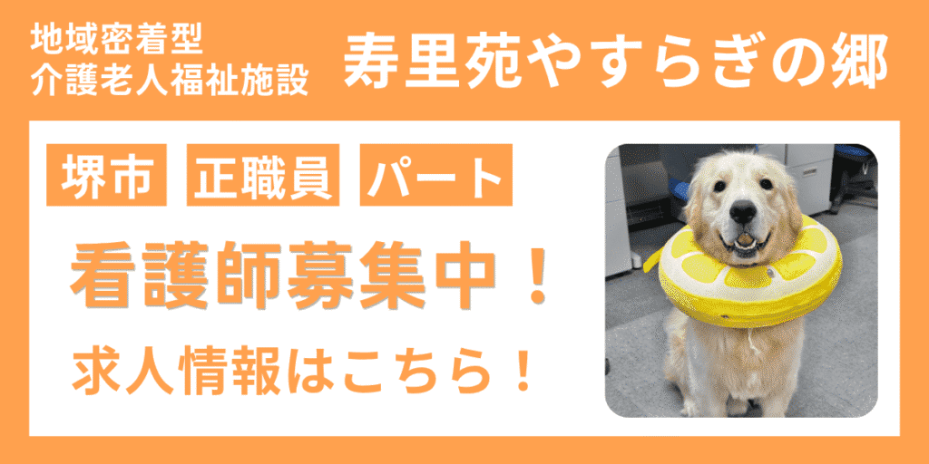【堺市/看護師/求人】ゴールデンレトリバーの福が働く寿里苑やすらぎの郷の求人情報(正職員・パート)